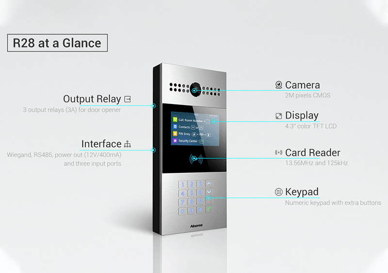 The security that comes with being able to control who comes into your building along with the ability to verbally and visually confirm their identity is immeasurable. Akuvox's Video Doorphone R28A enables you to easily monitor an entrance door or gate and gives you the peace of mind knowing that your facility is more secure.
